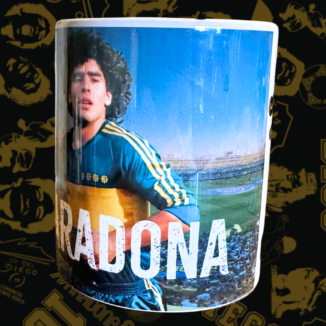 taza de ceramica, obtiene una imagen de Maradona en su paso por Boca Juniors.